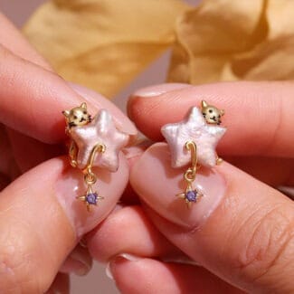 Whimsical Cat & Star Baroque Pearl Jewelry Set – Necklace & Earrings
