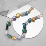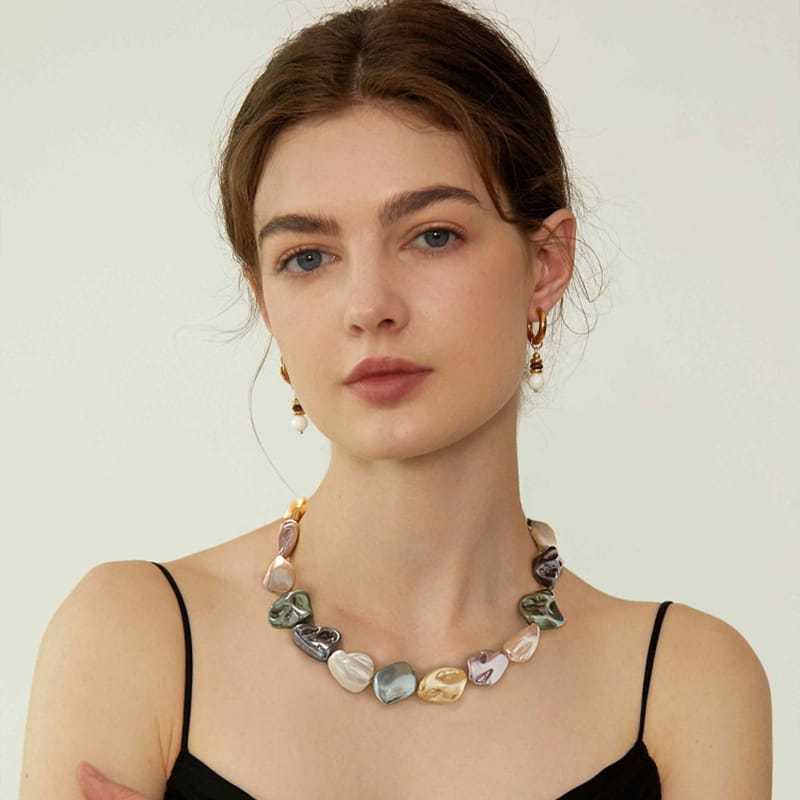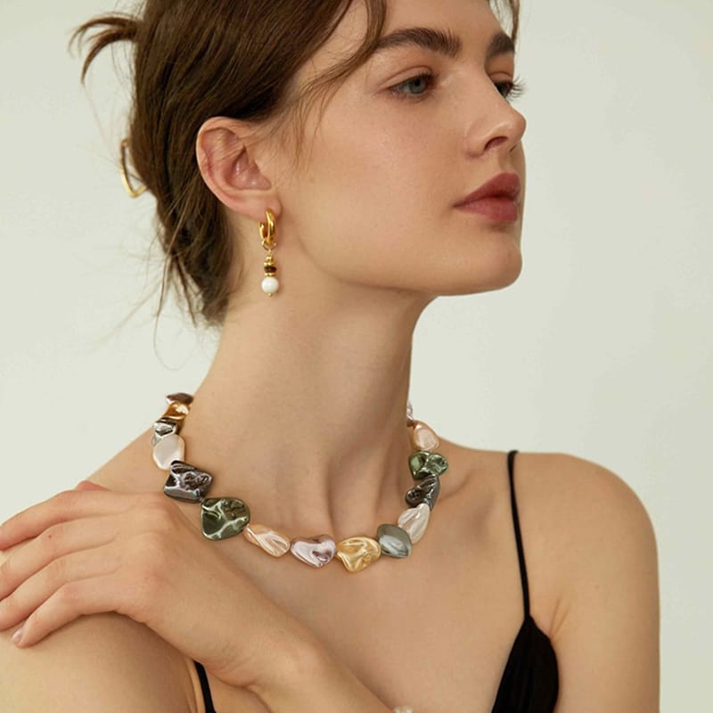 Make a bold style statement with this Baroque-Inspired Shell Pearl Necklace, featuring irregularly shaped beads that bring a fresh twist to classic elegance. Hand-woven with care, each bead has its own unique form, creating a one-of-a-kind look that celebrates individuality.