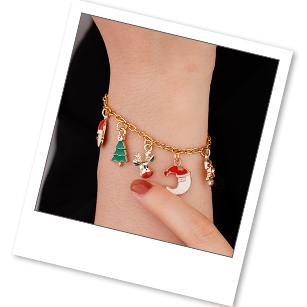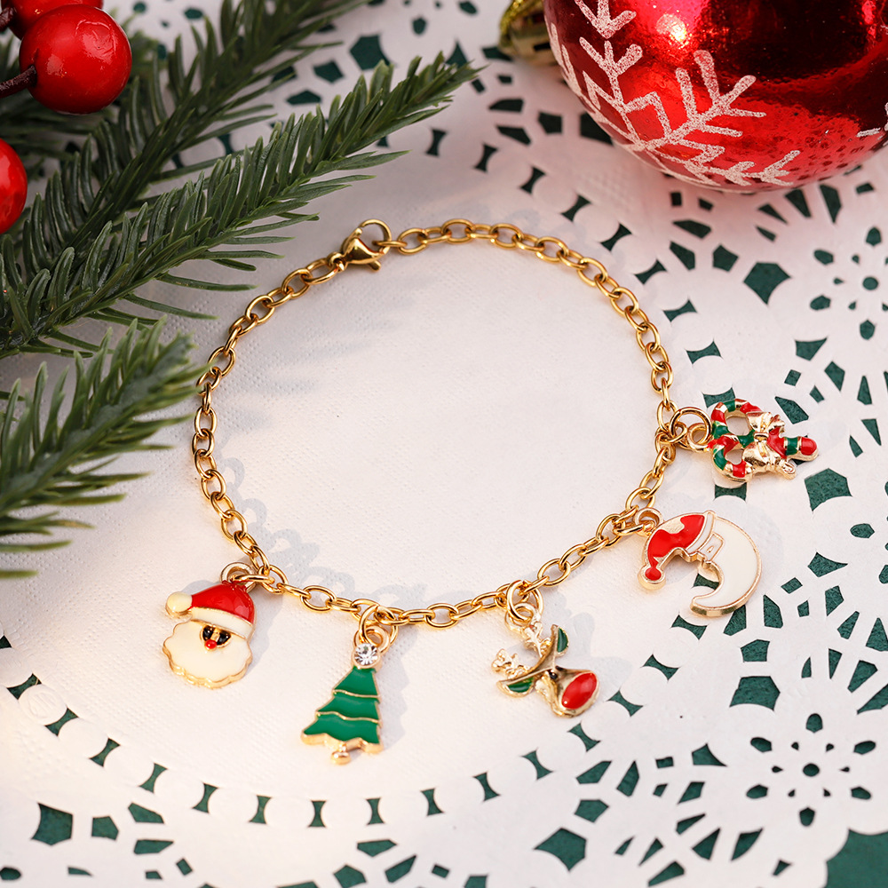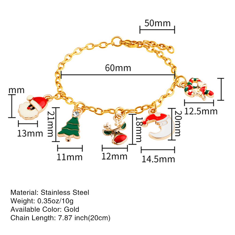 Make a bold holiday statement with our Christmas Statement Bracelet, featuring an exquisite collection of festive charms elegantly arranged on a high-quality stainless steel chain. This eye-catching piece showcases a curated set of holiday motifs, from classic Christmas symbols to seasonal icons, all crafted from durable stainless steel for lasting brilliance. The comfortable 15g weight gives the bracelet a premium feel, while the adjustable 20cm+5cm length ensures the perfect fit for any wrist.Designed to be the standout piece of your holiday accessories, this bracelet artfully combines multiple festive charms in one elegant display. The stainless steel construction maintains its radiant finish throughout countless holiday seasons, offering tarnish-resistant wear that stands up to even the most festive celebrations. Each charm is meticulously detailed, creating a captivating story of Christmas joy that wraps beautifully around your wrist.Perfect for Christmas parties, family gatherings, or as a special gift for loved ones, this statement piece transitions effortlessly from daytime festivities to evening elegance. The secure clasp ensures comfortable all-day wear, while the substantial presence of the bracelet makes it ideal for creating memorable holiday looks. ✨ An essential addition to your Christmas collection, this stunning bracelet brings together the magic of the season in one sophisticated, wearable masterpiece.