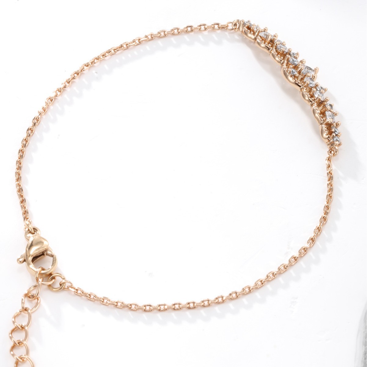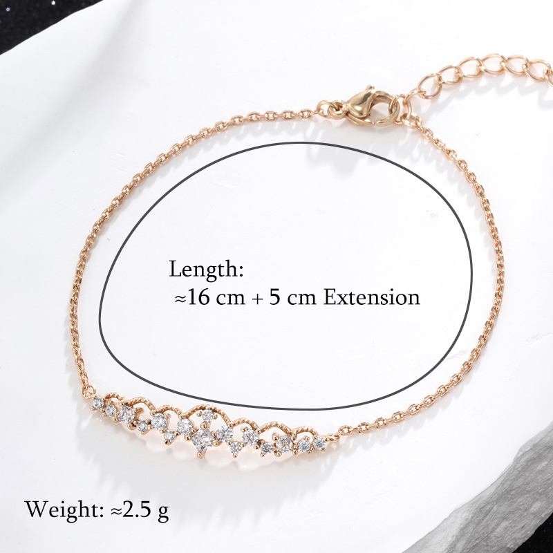 Refined Simplicity An ultra-fine chain paired with a delicately detailed crystal bar creates a light, graceful look that feels modern, elegant, and effortlessly wearable. Perfect for Layering Minimal enough to wear alone, yet ideal for stacking alongside a favourite watch or layered with other gold-tone chains for a softly textured finish. Warm Gold-Tone Glow Finished in a rich, warm gold tone inspired by classic 18K hues, the bracelet carries a gentle radiance that complements every skin tone beautifully.THE SPECS