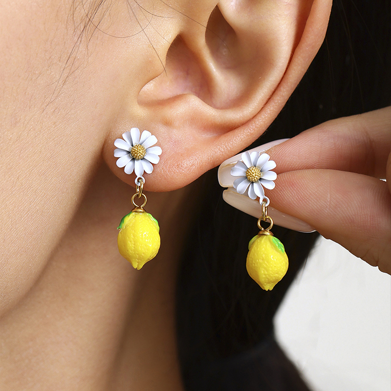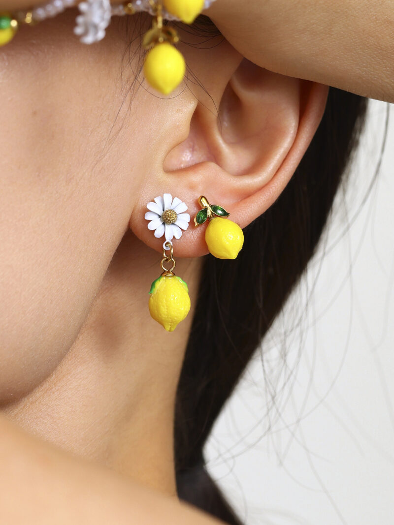 The Daisy & Lemon Drop Earrings are a playful ode to all things fresh, floral, and fruity. A delicate daisy blossom sits atop a glossy lemon charm — a pairing made for picnic dates, café chats, and spontaneous summer selfies. Lightweight and full of charm, they’re perfect for brightening up any outfit, any time.