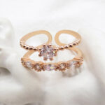 The Duo Rose Zirconia Ring features two luminous zirconia stones set in warm rose gold tones, bringing refined sparkle to your daily look. Crafted in polished copper and designed with a slim, minimal band, it’s a piece that whispers elegance — not shouts. Whether worn alone or stacked, this ring adds a soft, feminine glow to your hand.