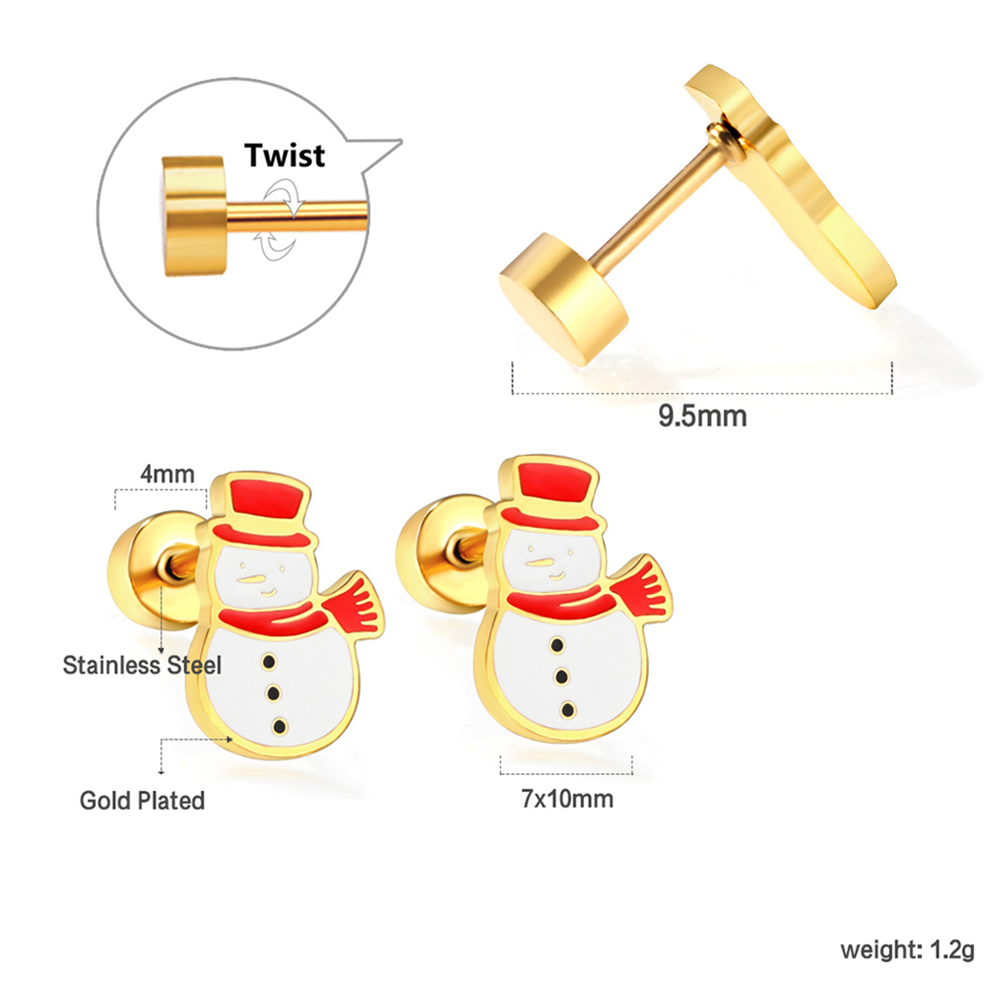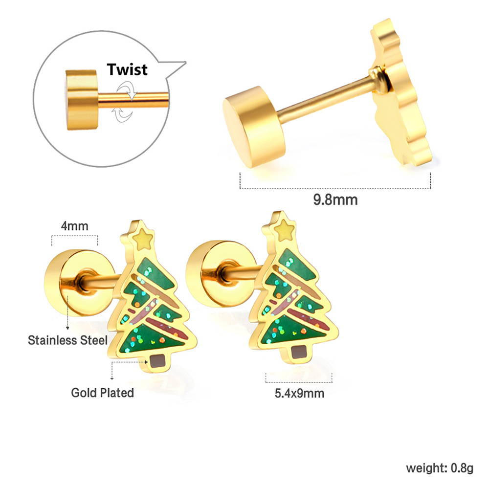 Celebrate the holiday season with our Festive Christmas Stud Earring Collection, featuring delicate designs crafted from stainless steel with a luxurious 18k gold plating finish. Using advanced PVD vacuum plating technology, each piece ensures exceptional durability and a long-lasting, tarnish-resistant shine. The lightweight construction (2g/pair) provides all-day comfort, making them perfect for extended wear during holiday festivities.Each design showcases intricate Christmas motifs, brought to life with precise detailing. The combination of premium stainless steel and high-quality plating offers a hypoallergenic and secure wearing experience, ideal for sensitive ears.Perfect for gift-giving or as a special treat, these earrings capture the joy of the season with timeless elegance. ✨ They arrive in festive packaging, ready to bring a touch of Christmas magic to any outfit.