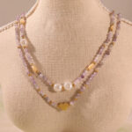Fine French-style Natural Stone Gold Bead Heart Necklace