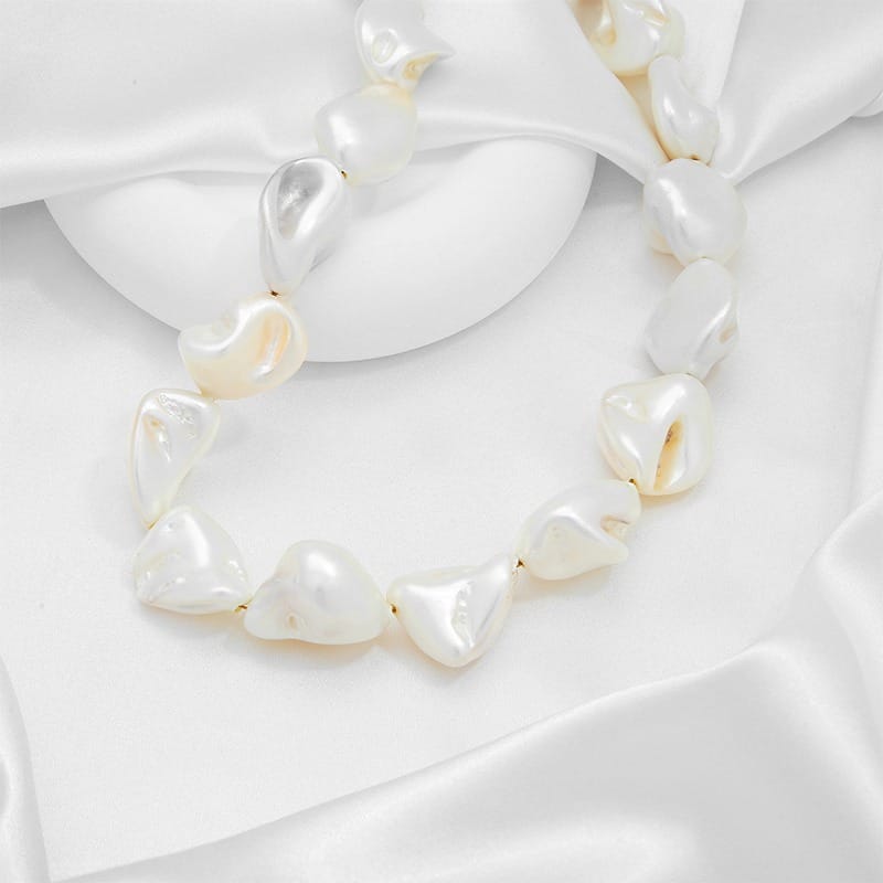 Elevate your style with the Heart Shell Pearl Baroque Necklace with French OT Clasp — a timeless piece that blends modern elegance with natural charm. Each shell pearl bead is uniquely shaped, resembling delicate heart-like baroque forms that shine with a soft pearlescent glow.