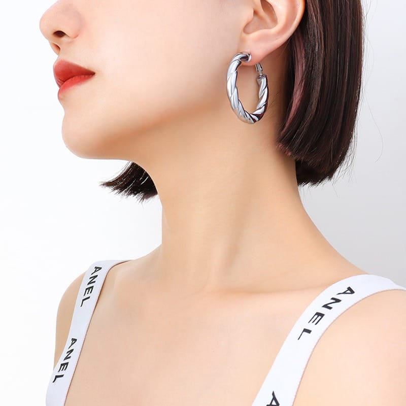 Ideal for stacking or wearing as standalone pieces, these earrings complement everything from casual outfits to elevated ensembles. Their hypoallergenic properties make them suitable for sensitive ears, and the secure clasp ensures easy wear. ✨ Perfect for those who appreciate modern minimalism with a touch of industrial-inspired design.