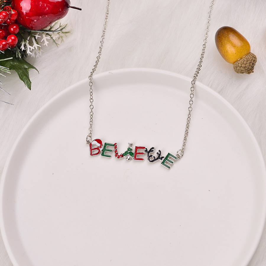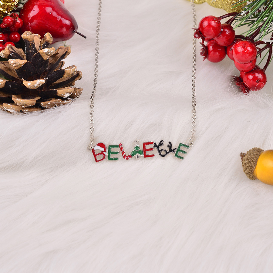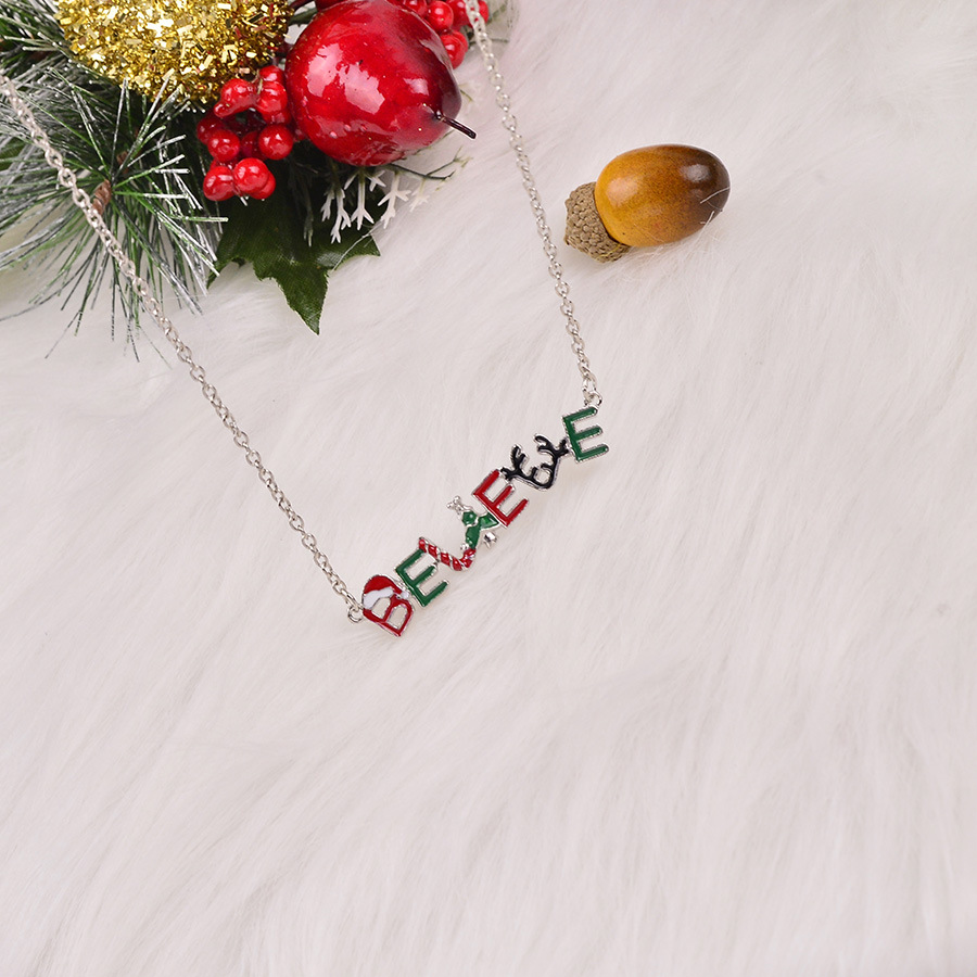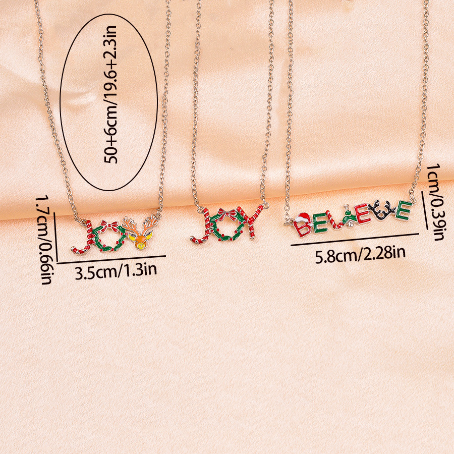 Spread holiday cheer with our JOY & BELIEVE Christmas Necklace Set, featuring elegant letter charms suspended from delicate silver-toned chains. Crafted from premium zinc alloy, this lightweight 8.5g set includes two meaningful holiday messages – “JOY” and “BELIEVE” – each beautifully designed with festive accents. The adjustable 50cm+6cm chain length offers versatile styling options, perfect for layering or wearing as a standalone statement piece.The sleek silver finish complements the intricate letter charms, creating a sophisticated yet festive accessory suitable for both casual holiday gatherings and formal Christmas events. Each charm captures the spirit of the season with its uplifting message, making this set not just jewelry but a wearable expression of Christmas warmth and hope.Perfect for gifting or personal wear, these necklaces maintain their luminous finish throughout the holiday season thanks to the durable zinc alloy construction. The secure clasp ensures comfortable all-day wear, while the meaningful messages add an extra layer of sentimental value to your Christmas celebrations.