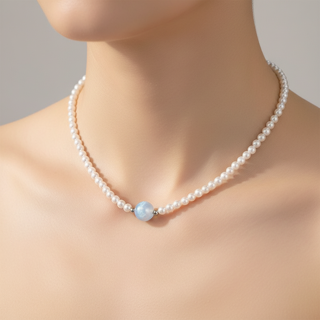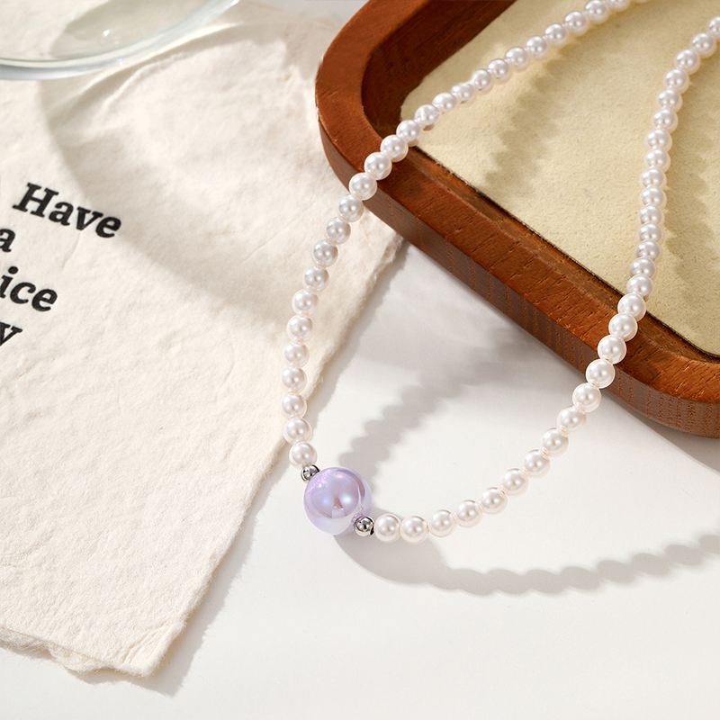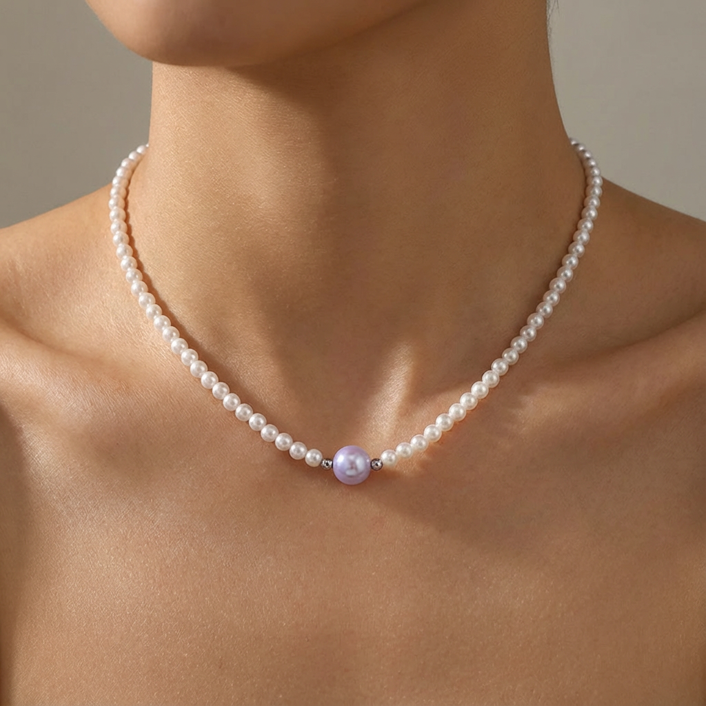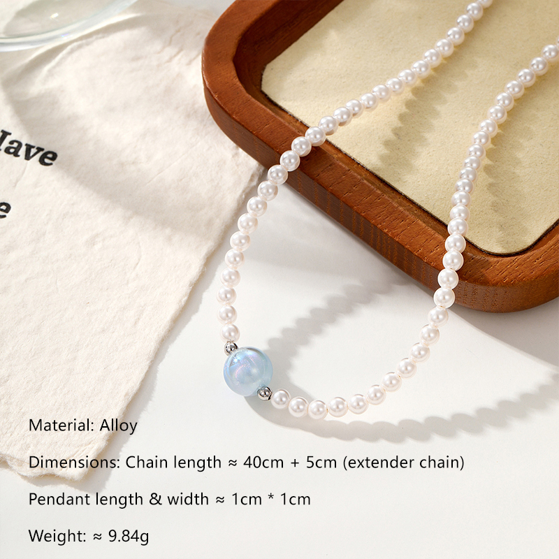 Classic Meets Playful The timeless appeal of white pearl-style beads is refreshed with a bold pop of colour at the centre, striking a natural balance between elegance and fun. Naturally Irregular Baroque-style imitation pearls give the necklace a relaxed, organic look—perfectly imperfect and full of character. Easy Summer Styling Wear it solo with a linen shirt or sundress, or layer it with a gold-tone chain for a more textured, carefree summer look.