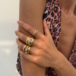 Each piece is crafted to echo the rhythm of cascading forms — from layered curves to twin stones — evoking grace in motion. With soft golden tones and delicate silhouettes, this collection is designed to shimmer effortlessly with every gesture.