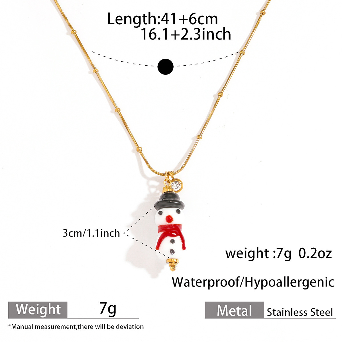 Embrace the whimsical spirit of winter with our Snowman Charm Christmas Necklace, featuring an adorable snowman pendant suspended from an elegant gold snake chain. Crafted from premium 316 stainless steel with a lustrous gold plating, this necklace combines durability with a touch of holiday magic. The lightweight 7g design ensures comfortable all-day wear, while the adjustable 41cm+6cm length offers a perfect, customizable fit for any neckline.