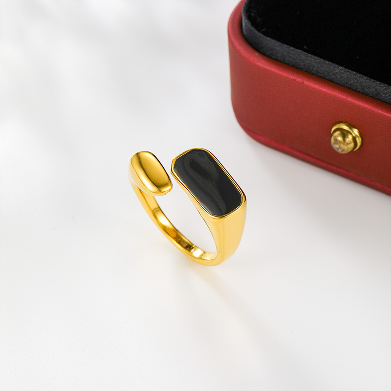 Stainless Steel Black Signet Open Ring – Gold