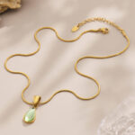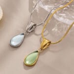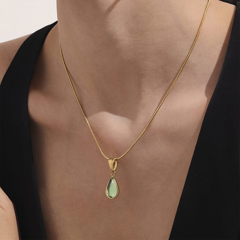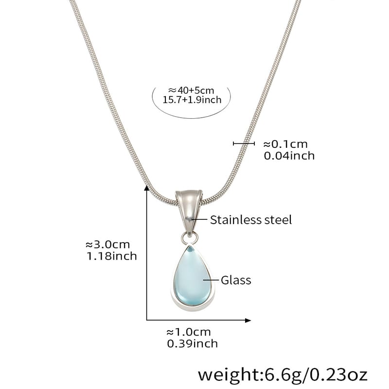 Crafted from eco-friendly stainless steel and high-quality glass, it’s lightweight, durable, and skin-friendly — ideal for daily wear. The delicate collarbone chain offers a refined silhouette, while the drop pendant brings a subtle pop of colour for a chic, sophisticated finish.