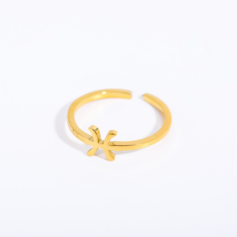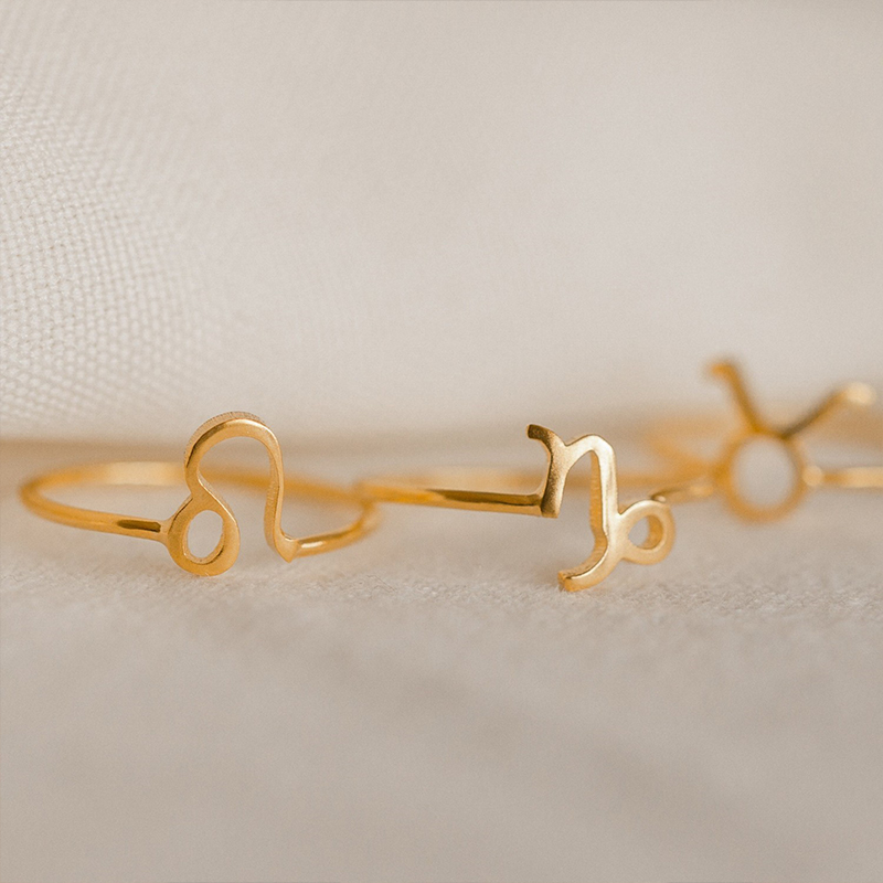 Zodia 戒指是一款时尚、精致的单品,专为您心中的明星而打造。它采用抛光镀金不锈钢制成,采用开放式设计,优雅、个性化且可堆叠,印有您的十二生肖符号。